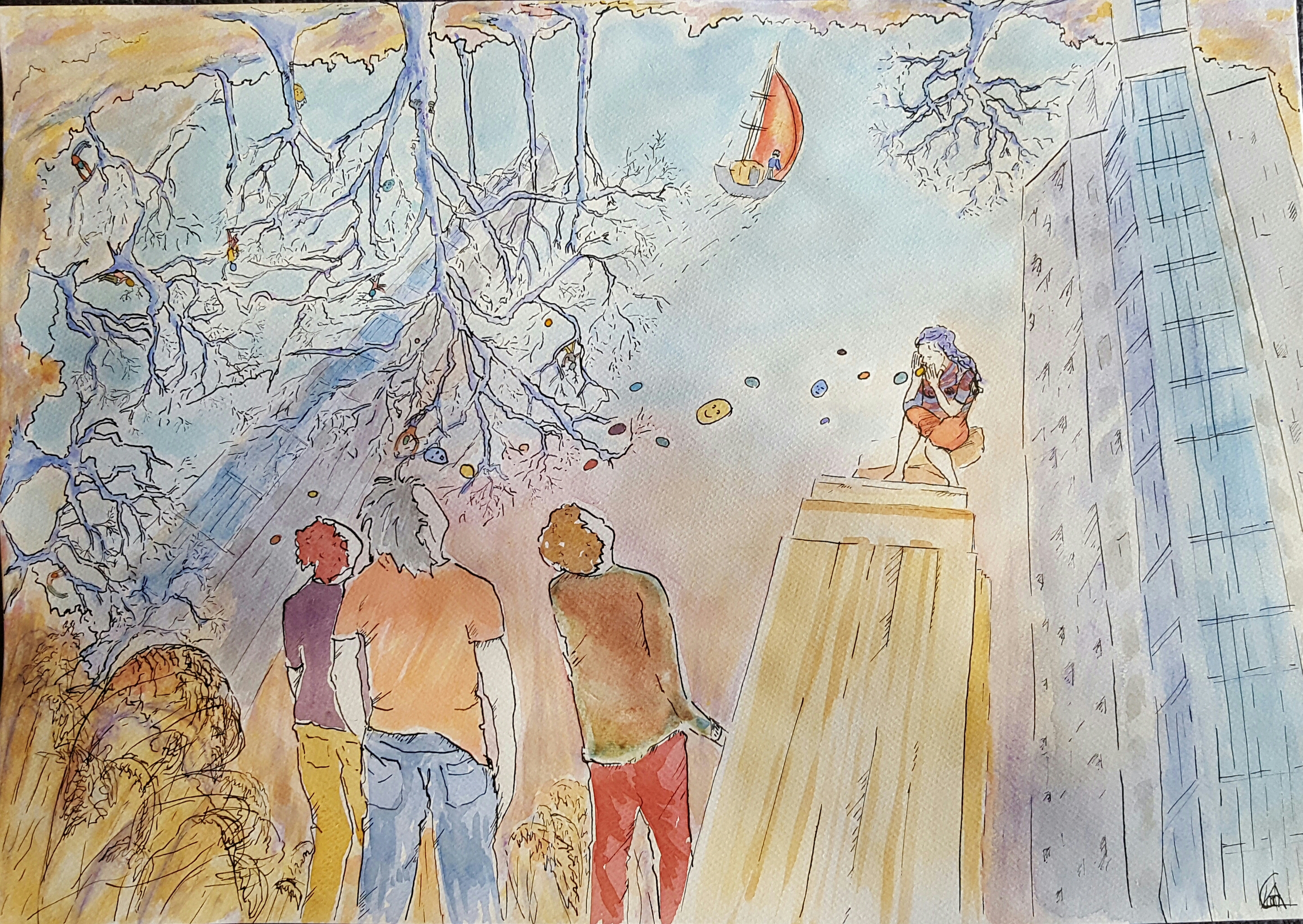 Arbrevie, encre/ aquarelle, 23/ 31 cm .(vendu)