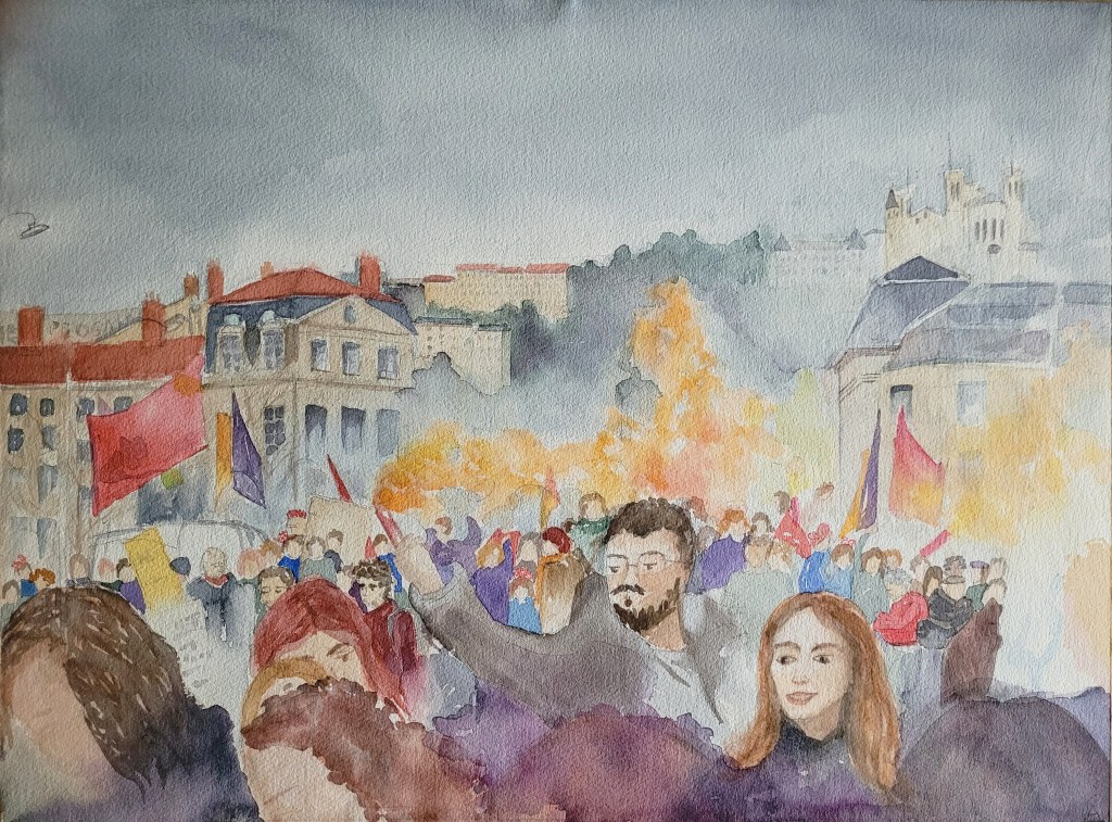 « On a bien compris,on est contre ». Aquarelle sur papier Arche 30 Mai 2023murielle Andrieu Le Gall Laisser un commentaire Partager : Cliquer pour partager sur X(ouvre dans une nouvelle fenêtre) X Cliquez pour partager sur Facebook(ouvre dans une nouvelle fenêtre) Facebook J’aime chargement…