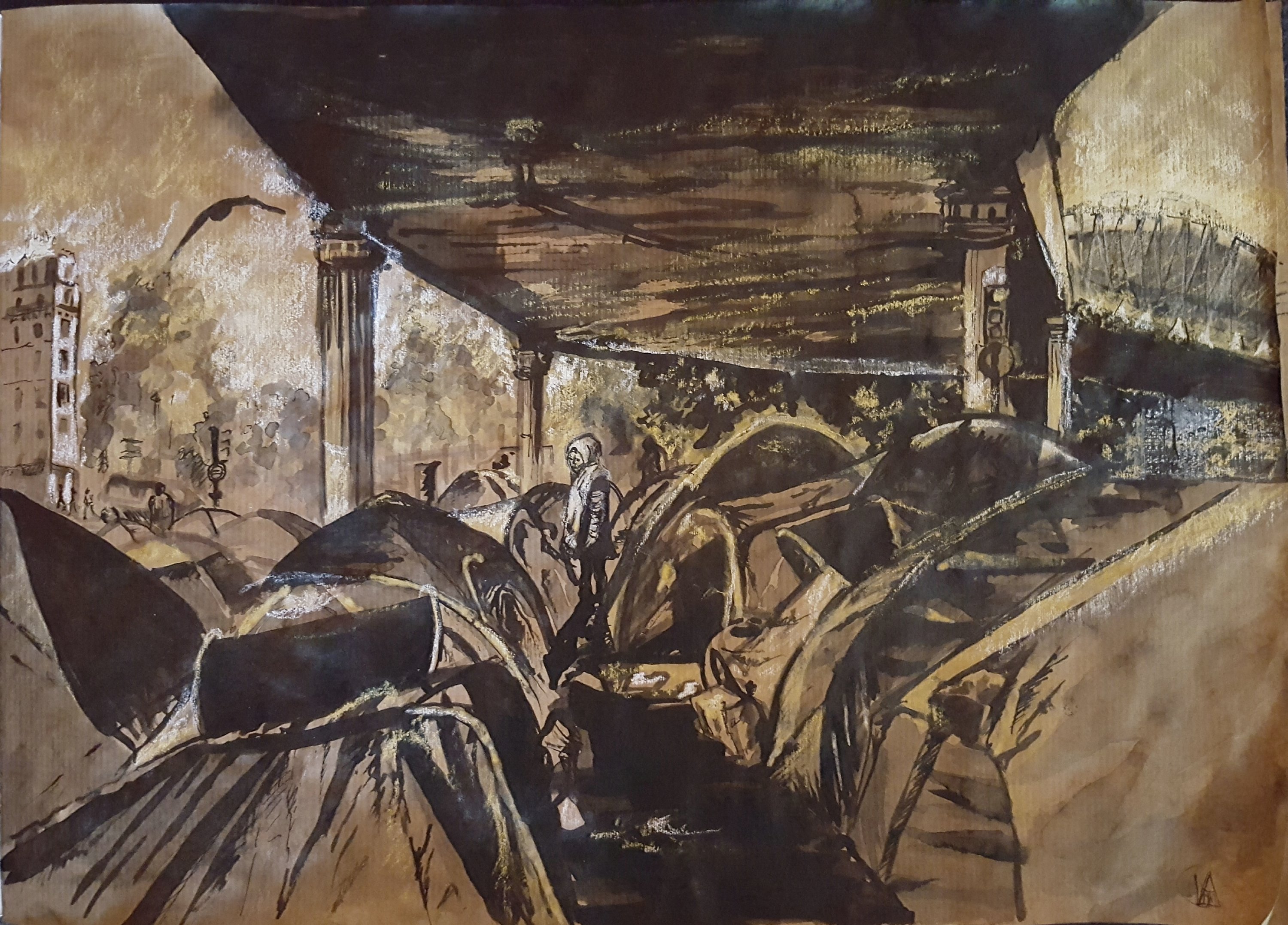 L’idée de cette toile est née de réflexions suite au massacre d’Orlando. Si l’homosexualité décenche une telle violence c’est peut-être qu’on la cache trop. Toute hétéro que je suis ne puis-je pas faire du beau avec une représentation moins normée de l’amour et de la tendresse ? Je vais maintenant réaliser une seconde toile de la même taille avec deux femmes. ☺