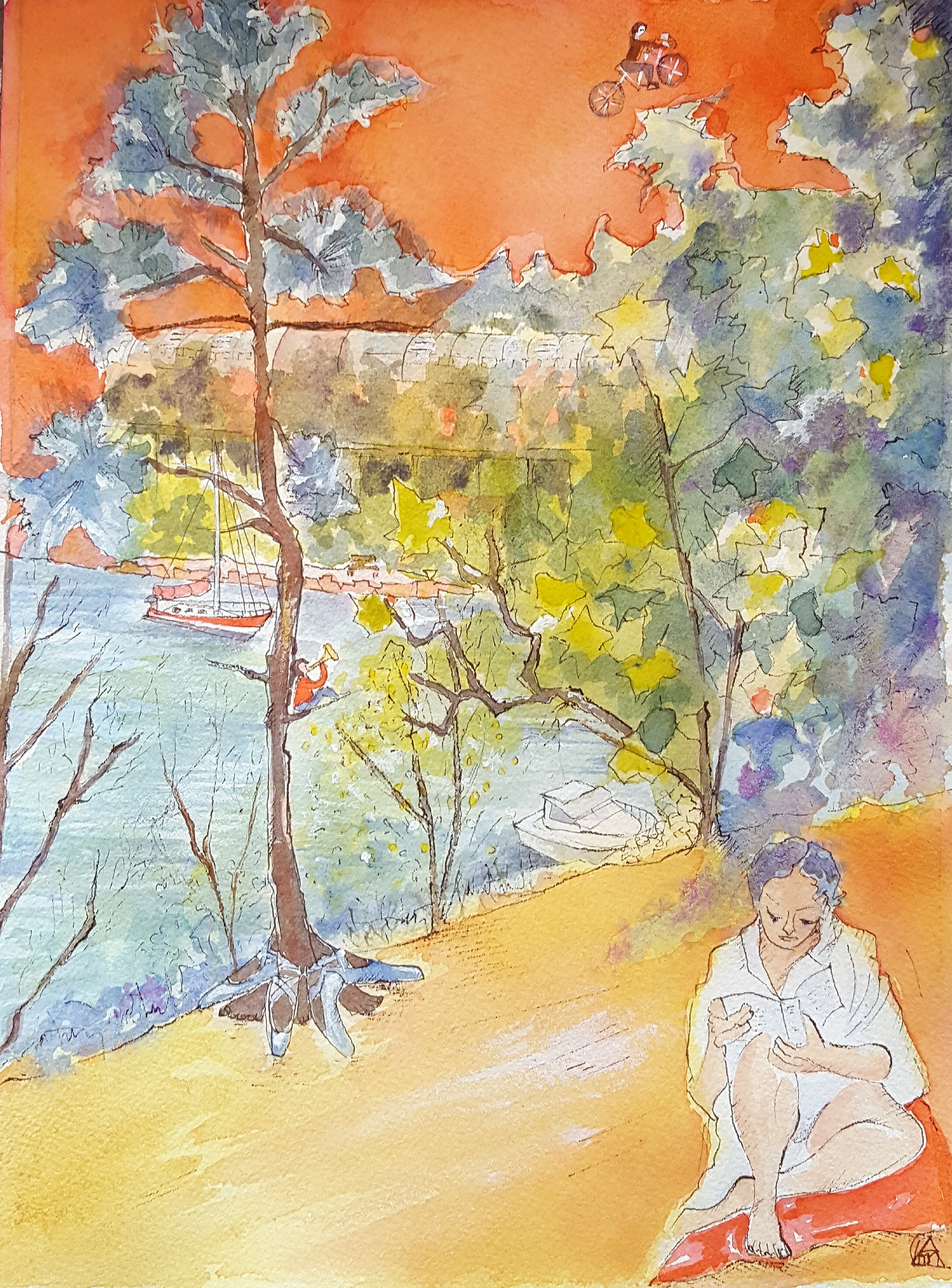 Une fois n’est pas coûtume voici des acryliques sur papier que j’ai réalisée pour imaginer ce que je pourrais faire peindre aux enfants. 5 panneaux de 150/150 et 3 de 150/120. Le thème souhaité par les enseignants est la nature. Manque ici le sous-sol : je couperais bien une des planches en 3 dans le sens de la longeur pour le poser dessous comme une prédelle sur un polyptique. Il y aurait aussi des animaux disposés en frise qui feraient le tour du préau où seront fixés les panneaux et d’autres animaux empilés sur des poteaux. Bref un gros projet qui m’a déjà pris beaucoup de temps et que j’ai envie de partager. Vous en verrez le résultat final d’ici quelques mois. 😉